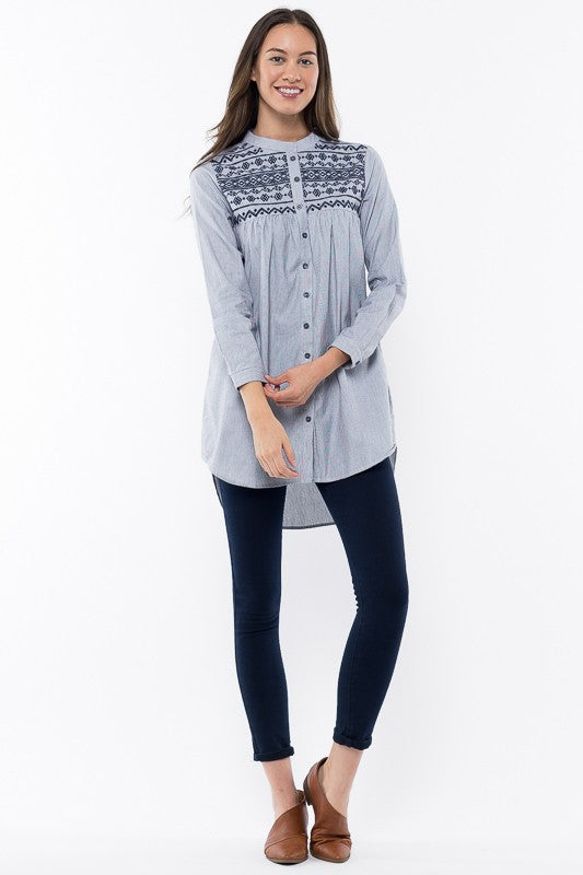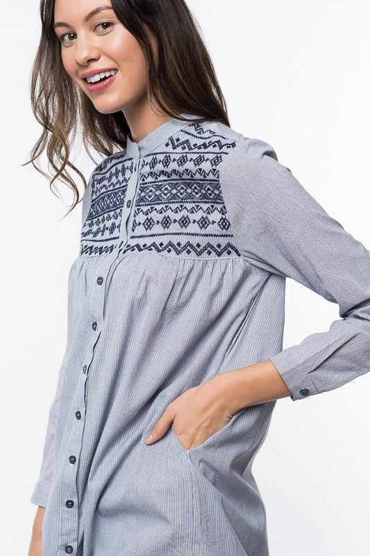 Jordana Stripe Half Button Collared Short Sleeve Shirt