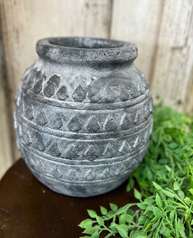 The aged appearance adds character and depth, making it a unique and eye-catching accent for any room. Whether displayed on its own or incorporated into a larger decor arrangement, the gray ceramic effortlessly complements various styles and color schemes.