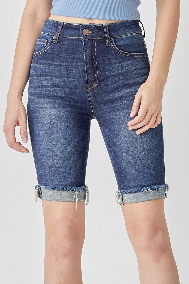 A perfect balance of casual comfort and effortless style, these mid-rise Bermuda shorts are made for easygoing days. The clean, cuffed hem adds a polished touch, while the soft stretch denim moves with you for all-day wear. Whether paired with a classic tee or a breezy blouse, these shorts are your go-to for warm-weather versatility