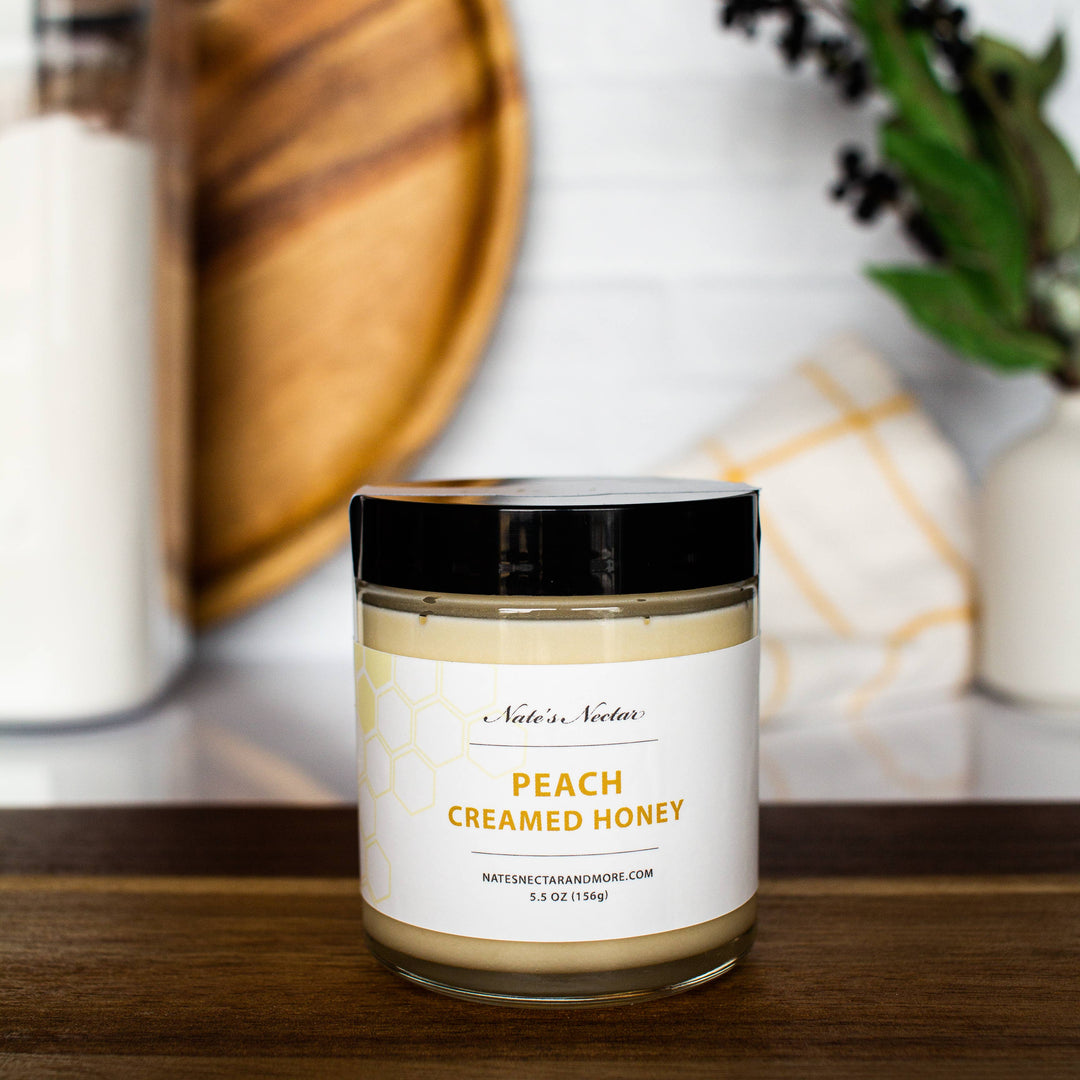 Nate's Nectar Creamed Honey is our natural raw honey that has been mixed to create a spread at room temperature. It is great on pastries, fruits, crackers, or by itself! To ensure the quality of our product, all creamed honey is created in small batches.